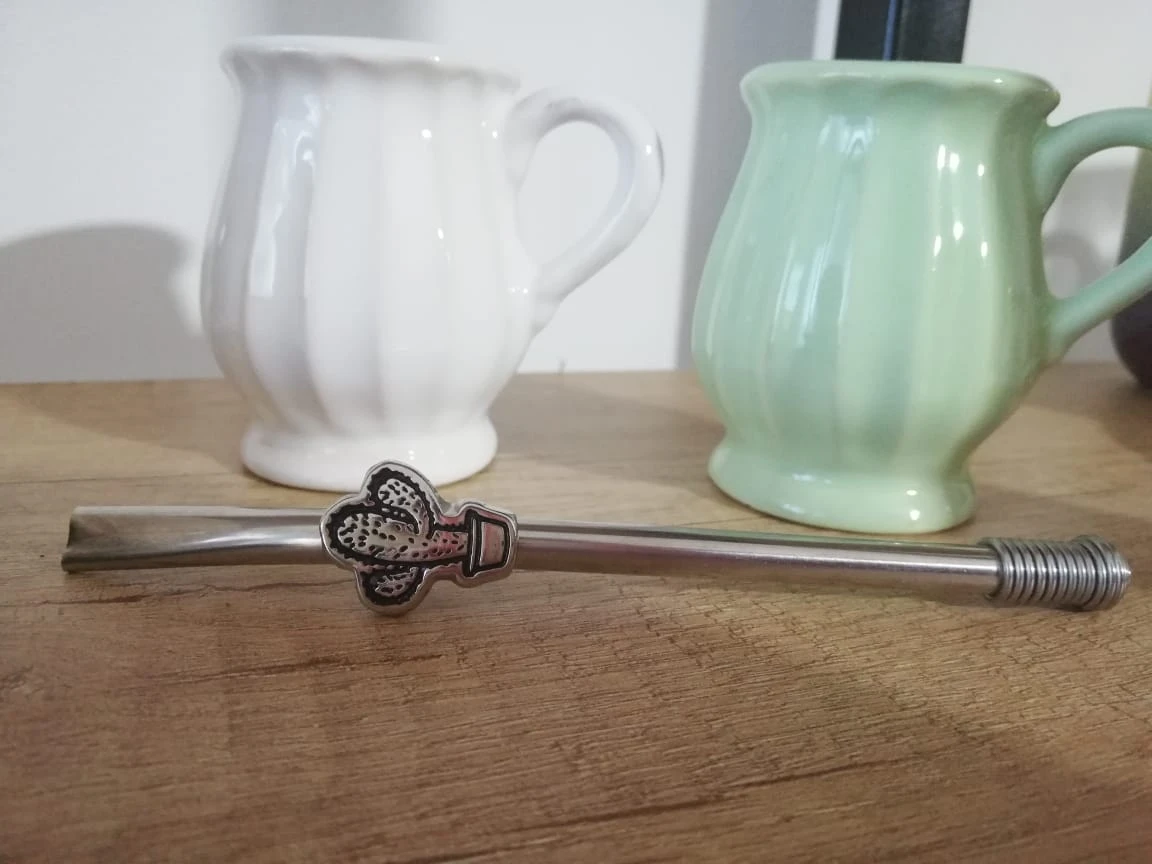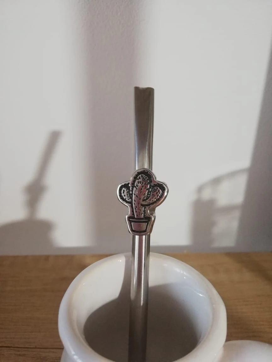Bombilla de acero inoxidable con diseño de cactus.