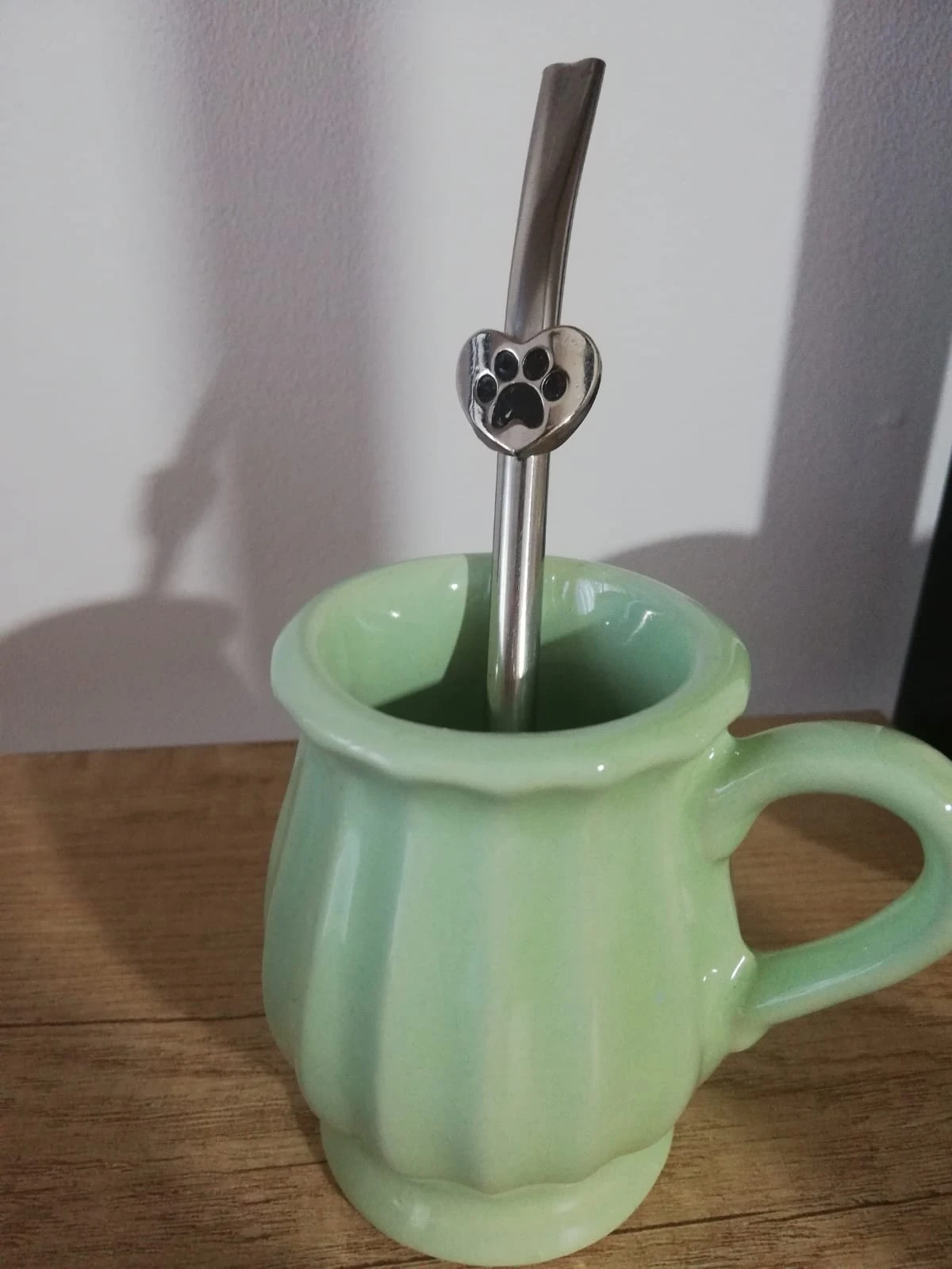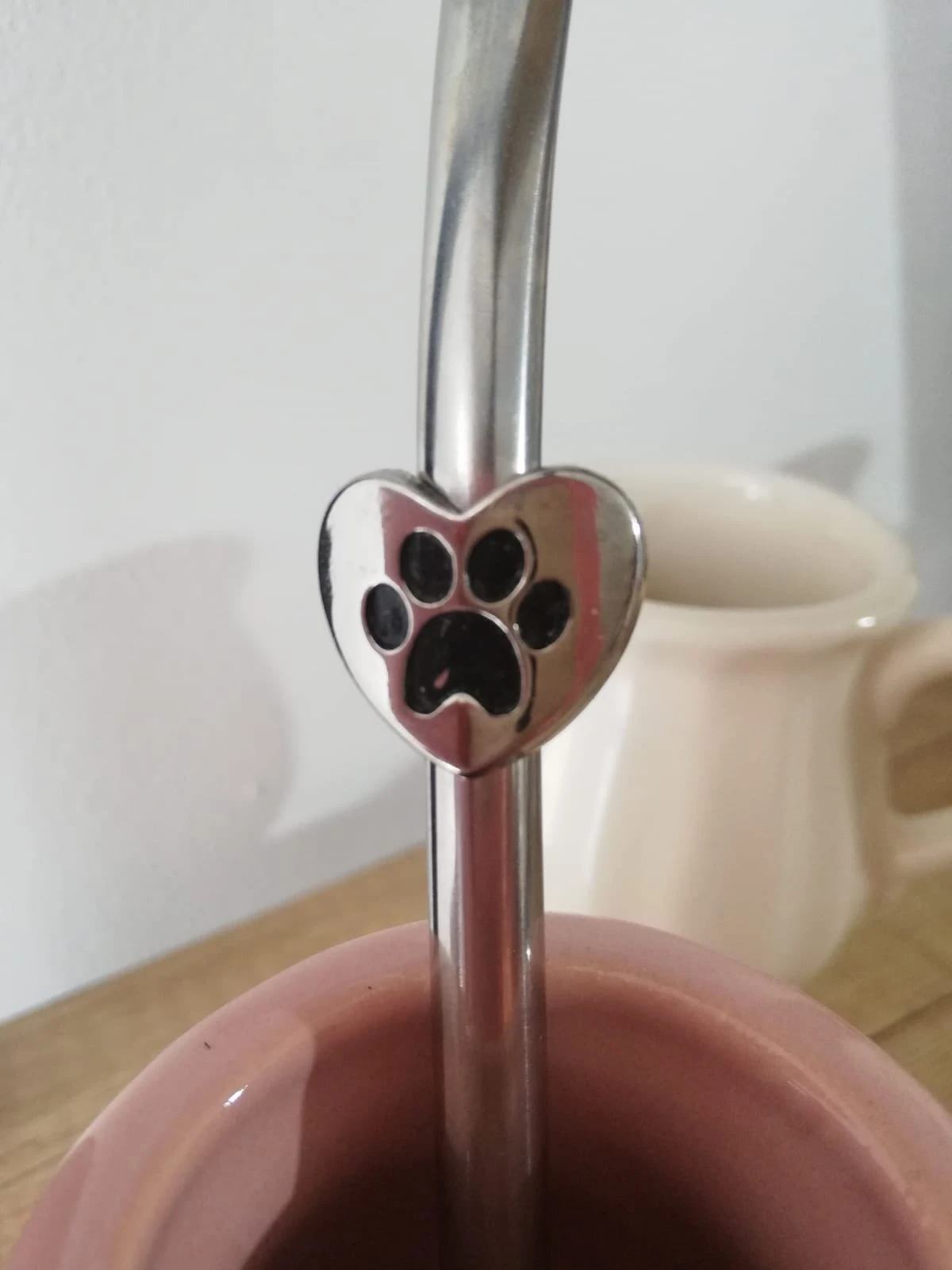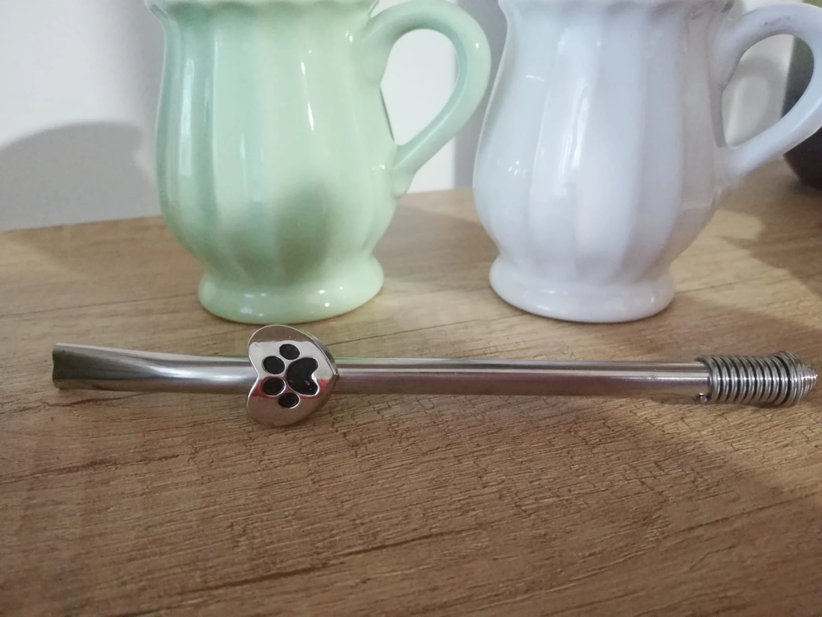 Bombilla de acero inoxidable don detalle de "patita de perro". Mide 15 cm de largo