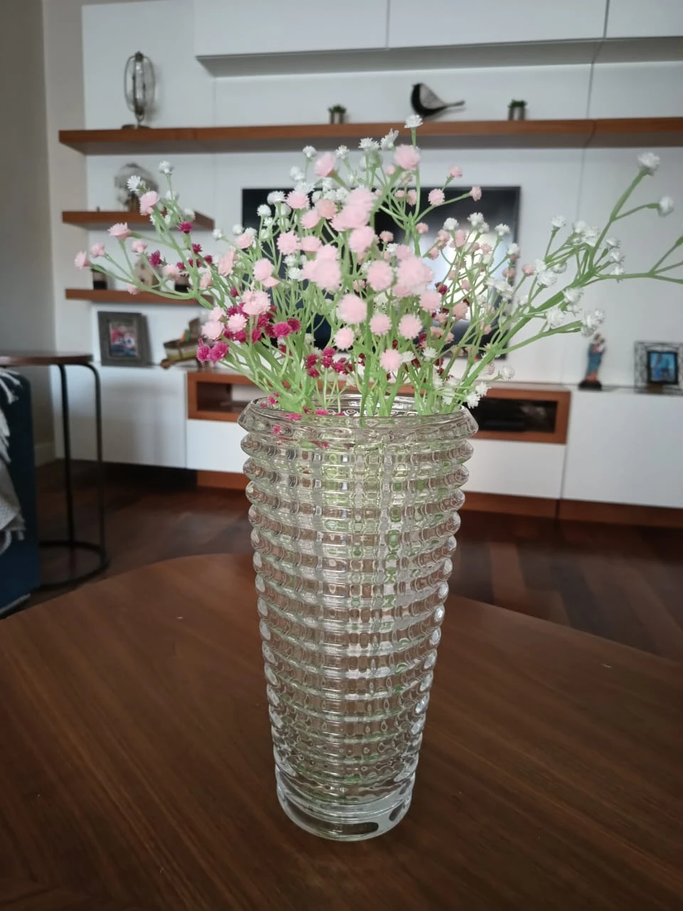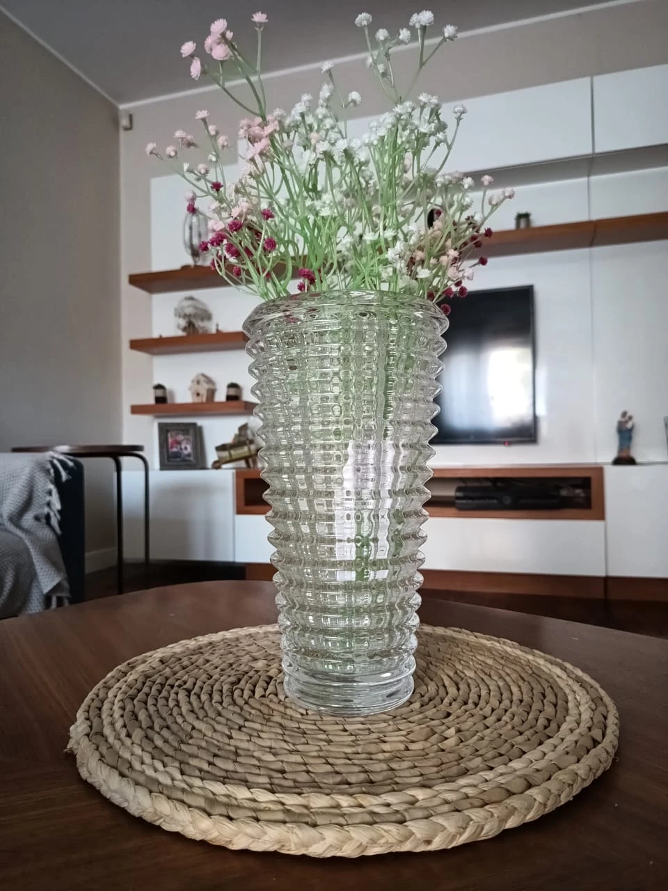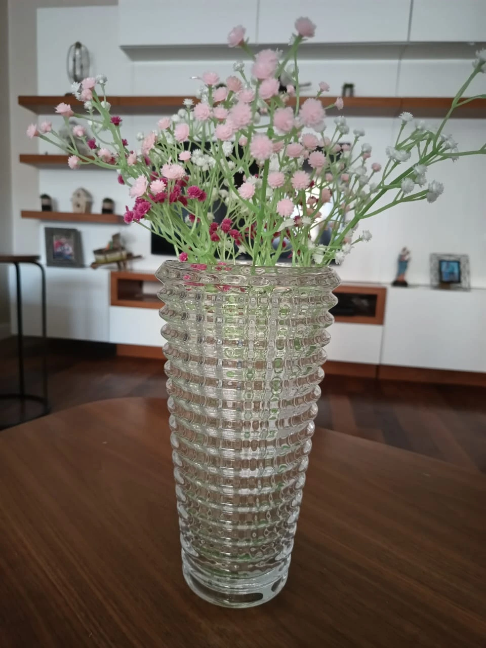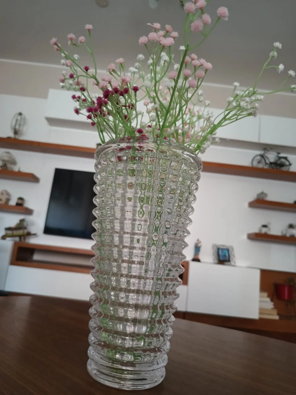 Es una pieza robusta y de buen peso, como para poner ramos grandes y largos sin que se de vuelta.