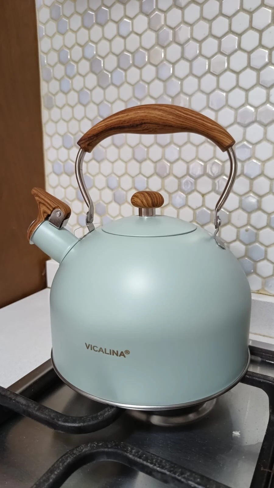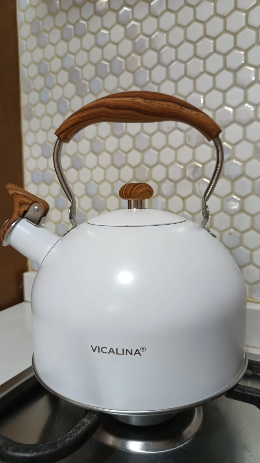 Pava silbadora de acero inoxidable de 2 litros, con mango de silicona