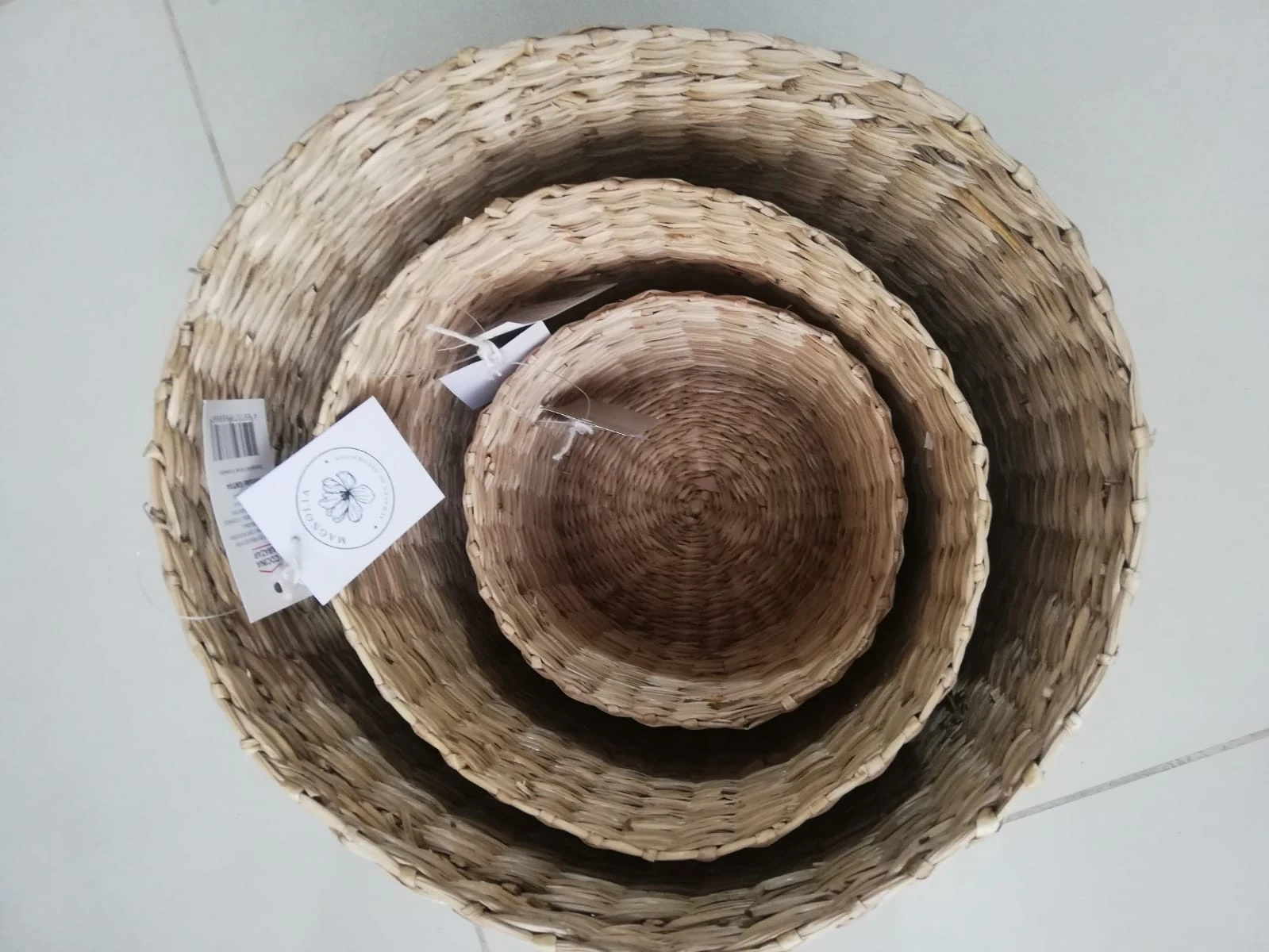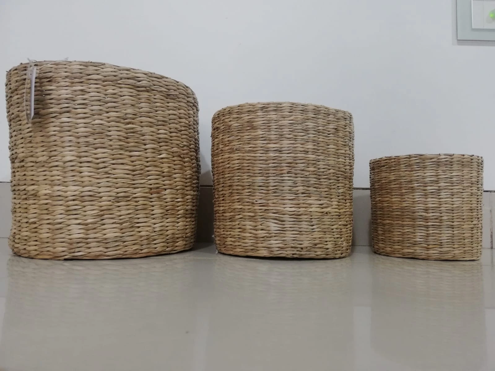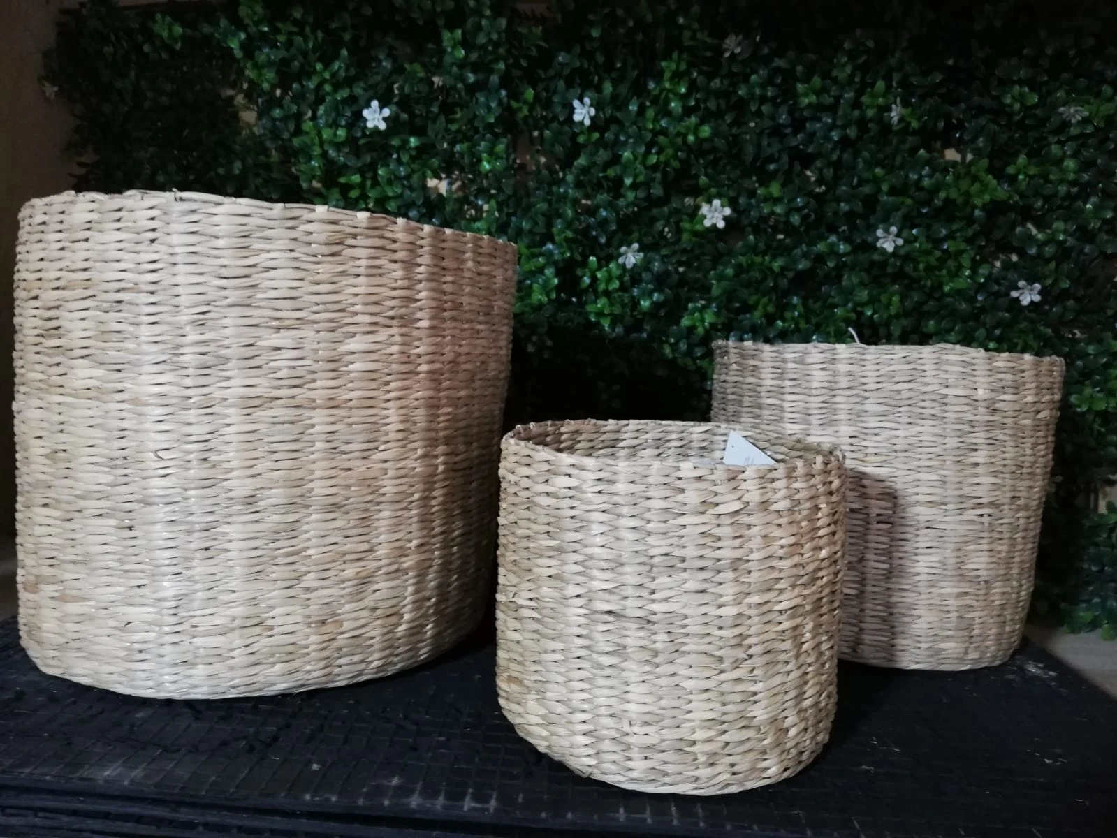 Juego de tres canastos de mimbre:
